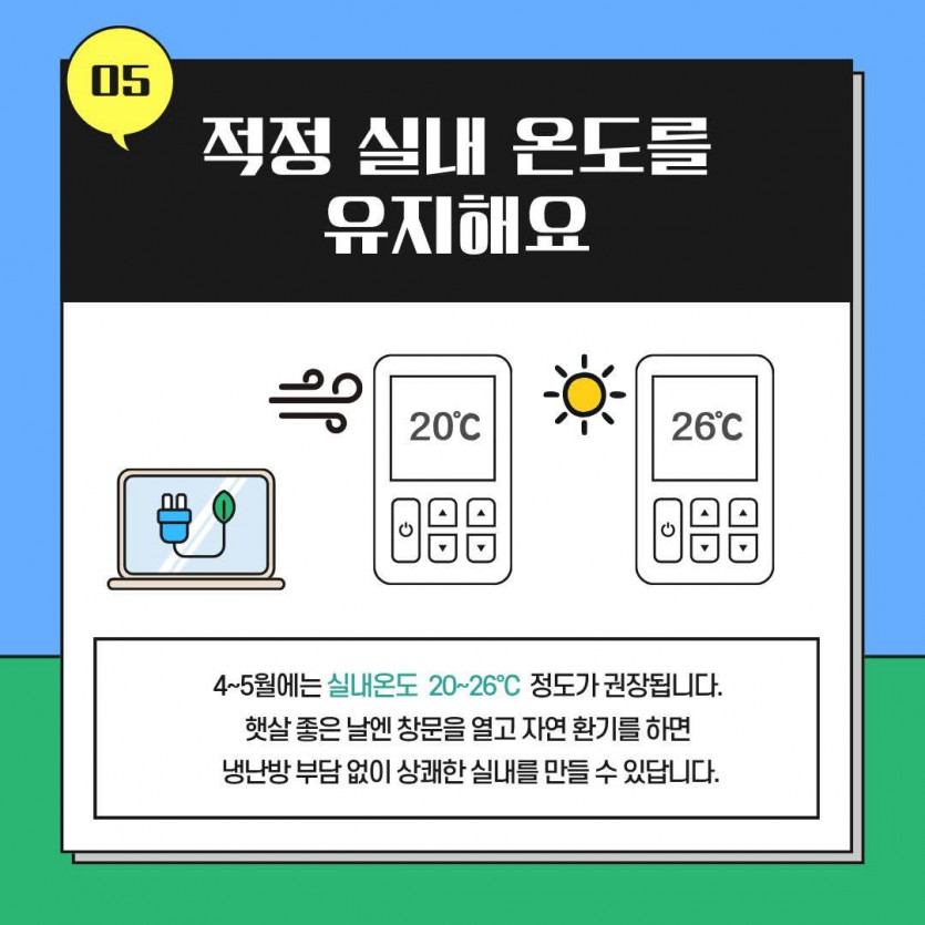 ✔ 적정 실내온도 유지하고 자연 환기 실천하기