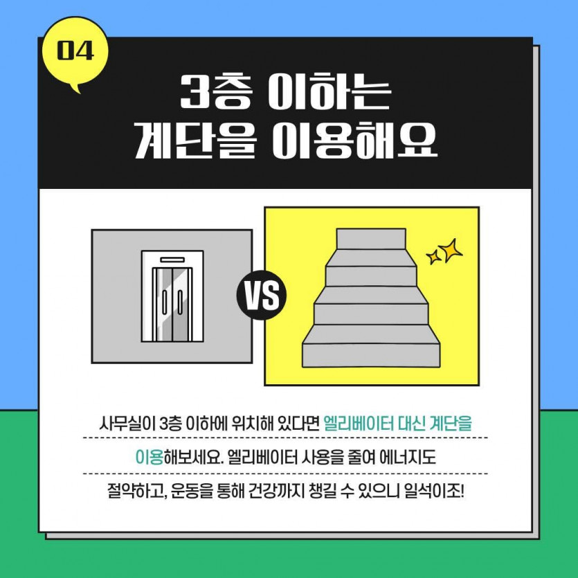 ✔ 3층 이하는 계단 이용하기